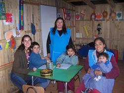 Soledad Diaz, à gauche, permanente de "Un techo para Chile"dans le jardin d'enfants, première étape du changement à Los Esperos