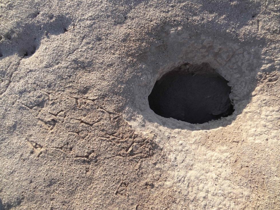 Terrier de reproduction des océanites de Markham dans la croûte de salpêtre - © R. Barros