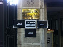 Il est 18h30, mercredi 7 janvier, un petit groupe d'une centaine de personnes se regroupe en silence devant l'ambassade et consulat de France de Santiago, au 65 avenue Condell. Quelques heures plus tôt 12 individus sont morts dans un attentat qui visait la rédaction de Charlie Hebdo, journal satirique célèbre pour ses caricatures provocatrices. Certaines personnes ont imprimés de petites pancartes noires avec le désormais célèbre ?Je suis Charlie? inscrit en lettres blanches. Expatriés, étudiants, voyageurs, journalistes, chiliens, tous se retrouvent et se rassemblent encore sous le choc de la nouvelle tombée quelques heures plus tôt. La presse chilienne est là, une partie pour couvrir le rassemblement, l'autre tout simplement pour exprimer sa solidarité.