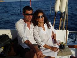 C'est justement au bord de la "grande bleue", à Bandol dans le Var, que Lili et Thierry, les bienheureux importateurs de "Blanc du Nil" à Santiago, ont connu la marque, il y a à peine plus d'un an. Ils se sont d'ailleurs cette fois là approvisionnés, enfants compris, comme en témoigne leur photo (ci-dessus), prise en méditerranée le jour suivant. Thierry Goutelle, d'origine marseillaise, installé depuis 15 ans au Chili, est d'abord un entrepreneur dans le tourisme. Lili est chilienne, et travaillait comme administratrice du restaurant "Baco" lorsqu'ils se sont rencontrés. Après cette escapade méditerranéenne, ils ont pris les premiers contacts, le feeling est passé, l'affaire s'est faite !