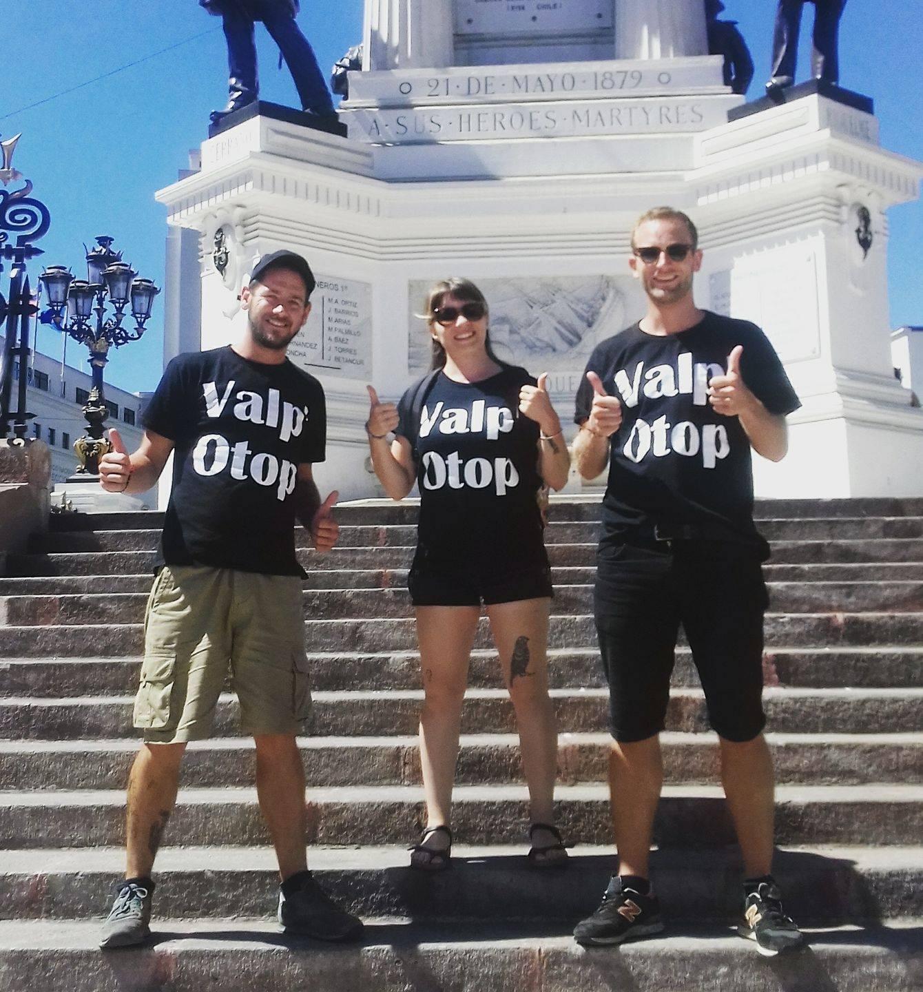 Jonathan Chételat : En arrivant au Chili fin 2014, j'ai tout de suite voulu travailler dans le tourisme. Je connaissais déjà assez bien Valparaiso. De mère Chilienne, j'y venais tous les ans depuis 2008. Je me suis d'abord formé dans la principale entreprise de Free Walking Tour de la ville. Je me suis rendu compte que ce job était vraiment fait pour moi. Je me suis également rendu compte que parmi la grande variété de tours qui existe à Valparaiso, il n'y avait aucune offre pour le public francophone. Je me suis donc dit qu'il y avait moyen de faire quelque chose. Les Français en particulier, mais les francophones en général sont très présents à Valparaiso. Ils sont aussi en général assez mauvais pour les langues, et ça c'est un avantage pour moi ! J'ai donc laissé l'idée mûrir un peu. C'est en novembre 2016 que j'ai lancé Valp'Otop. Au départ, seulement trois jours par semaine, mais après un mois, face au succès remporté, j'ai décidé de lancer les tours tous les jours puis de former deux guides pour m'épauler. Je ne m'attendais pas du tout à ce que ça marche aussi bien. À la base c'était mon activité secondaire, j'avais une petite auberge qui était mon activité principale. Finalement, j'ai décidé de lâcher l'auberge pour me dédier aux tours à 100%. Maintenant nous proposons en plus des tours privés, complètement à la carte. Quant aux difficultés rencontrées, les principales sont d'ordre légal. Faire toutes les démarches auprès des impôts, mais aussi obtenir les autorisations municipales, relève du parcours du combattant. On a eu aussi quelques soucis, au début, avec d'autres agences de tours qui nous ont fait la guerre. Je voyais mes flyers et affiches disparaitre des hôtels... Mais ça n'a pas duré longtemps.