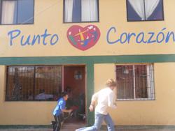 La vue sur la mer est splendide, un trait curieux que partagent nombre de quartiers déshérités de la planète. La maison Point C?ur est située dans "Porvenir Bajo", dans le cerro Playa Ancha, de Valparaiso, le plus à l'ouest de la ville, ouvert sur le Pacifique. En voyant passer un « gringo », les habitants se demandent s'il est égaré. On ne se risquerait d'ailleurs pas à sortir son appareil-photo. Au bout de la rue numéro 7, se trouve la maison, d'où parviennent des voix et des rires, qui contrastent avec l'atmosphère un peu tendue des alentours. Une des volontaires nous fait entrer dans la petite cour où des enfants de six ou sept ans jouent au foot. A l'intérieur, d'autres sont en train de dessiner dans le salon, où vont et viennent des « amis » passés pour discuter, prendre un café, ou jouer un morceau de guitare.