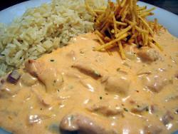 Originaire de Russie, cette recette du boeuf stroganoff a gagné une adaptation brésilienne fort populaire. Sa particularité est d'allier la crème à la tomate, de se faire tant à partir de poulet que de crevette, alors que l'originale est au boeuf et de servir avec du riz au lieu de pommes de terre à l'eau.