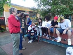 Fin de journée à Diadema. Au fond d'une petite rue, une maison qui ne paie pas de mine. Derrière la cour, un escalier mène à un modeste studio d'enregistrement. C'est dans une salle exigüe qu'ils se retrouvent tous autour de Frédéric Pagès pour écouter le CD enregistré. Après plus d'un mois de travail intensif, ces jeunes artistes sont impatients d'écouter le résultat. A l'écoute des premières musiques, les visages sont tantôt concentrés, tantôt amusés. "C'est la première que j'entends ma voix, s'amuse Andressa, une jolie danseuse de break-dance qui a posé sa voix pour la première fois. Je ne pensais pas que ce serait aussi bien, j'ai aimé la prestation de tout le monde et la mienne aussi ! J'ai été impressionnée par ma manière de chanter, d'interpréter le texte. Je ne m'en pensais pas capable." Frédéric Pagès, en professionnel, ne perd pas une note et écrit tous les ajustements instrumentaux à faire. "J'adore le résultat, s'enthousiasme Djoul. Ca donne vraiment quelque chose de différent. J'adore ce mélange de langages et de personnes, c'est comme une grosse marmite dans laquelle on aurait mis le texte, essentiel, et plein d'autres ingrédients. On dirait une feijoada !"
