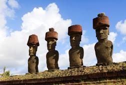 L’Ile de Pâques, Rapa Nui pour ses habitants, tient son nom du jour de sa découverte par le premier Européen au 18e siècle. Elle a toujours cristallisé nombre de mythes et légendes. Il faut d’abord rappeler qu’elle est le lieu habité le plus isolé du monde, à 3.680 km du Chili et 4.050 km de Tahiti. Son insularité nimbe d’exotisme les rites et traditions locaux dont les origines se perdent dans la nuit des temps. On pense d’abord aux fameuses statues moaï, qui dépassent tous les records tant par leur nombre (887) que par leur taille (jusqu’à 21 m de haut). Plusieurs théories tentent d’expliquer la quasi extinction d’une civilisation si élaborée ou l’édification de ces statues, mais l’île garde encore de nombreux mystères…