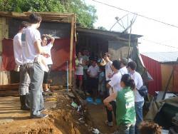 On est de nouveau tellement efficace qu'on achève nos travaux du jour avant la fin d'après-midi (la logistique de l'ONG devait apporter le reste du matériel le jour d'après). La responsable de notre groupe nous répartit pour aller aider les autres constructions de la favela, plutôt très en retards. Le soir, bon dîner servi dans l'école, et à 23h, ça roupille dur là-dedans ! On rêve d'une douche après cette journée de dur labeur, on est vraiment crade de chez crade.