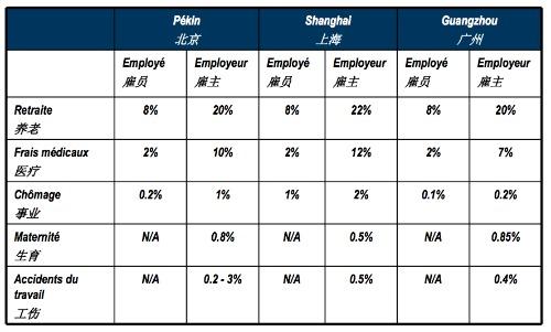 Tableau part employeur/employé. Le taux de cotisation est déterminé localement (Gide Loyrette Nouel)