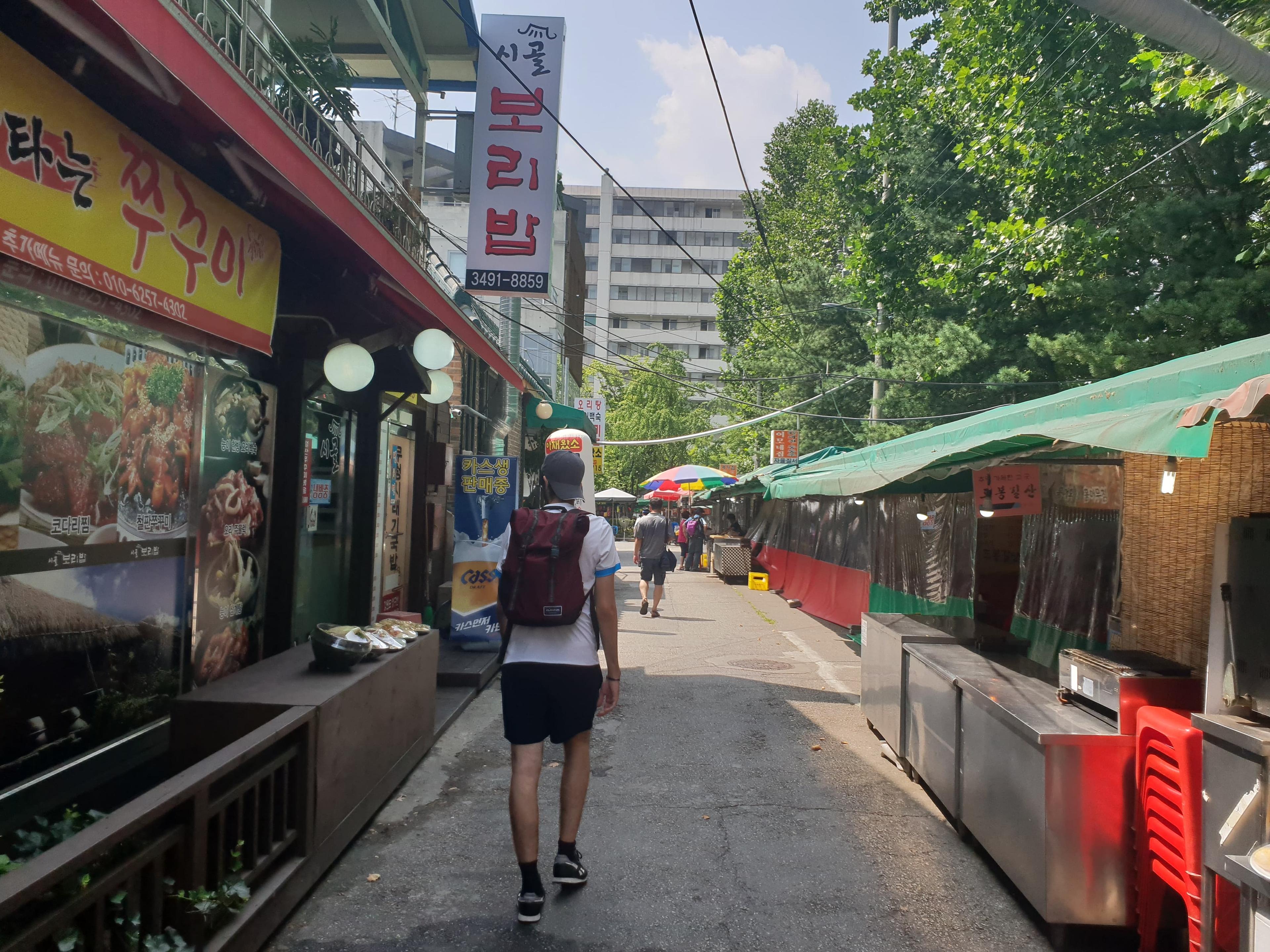 Le parc national Bukhansan en est le parfait exemple. Situé au nord de la ville, il couvre une surface d'environ 80km2. Accessible grâce à la station de métro de Dobongsan, les randonneurs parcourent dans un premier temps un petit marché composé de plusieurs stands de nourriture et de magasins spécialisés dans la marche à pied. L'occasion d'acquérir la panoplie complète du randonneur coréen.