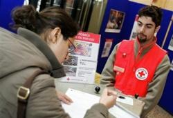 Un volontaire de la Croix-Rouge pendant la campagne de dons en faveur des victimes de la catastrophe du Tsunami (photo AFP)