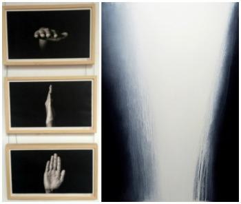 "One Hypostasis : Point Line Plane" pourrait être mon deuxième coup de c?ur. Un ensemble de trois photos, imprimées en noir et blanc sur papier de riz, tout en simplicité et beauté. Une main (celle de l'artiste), vue en gros plan, sous trois angles différents : les extrémités des cinq doigts pointés, le profil de la main comme une fine ligne, et l'empreinte de face côté paume. Pour ATMAN ONE, la main symbolise l'homme, car seul l'homme possède une partie du corps si raffinée et puissante?