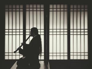 Vous pourrez aussi admirer, quelques magnifiques photos où l'on voit l'artiste vivre pleinement son art. "Melody of Feathers Garment", du célèbre photographe Sun Jun, où il joue de cette flûte traditionnelle d'origine chinoise (en bambou), reprise par les Japonais (le shakuhachi).