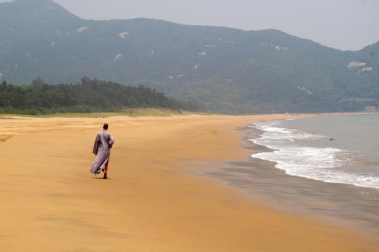 En effet, outre les hordes de touristes qui arpentent les sentiers montagneux pour aller visiter les temples sacrés, les plages sont relativement préservées et vierges de monde. Le sable y est blanc et fin, la mer limoneuse de Shanghai ne sera jamais très bleue mais elle semble propre.