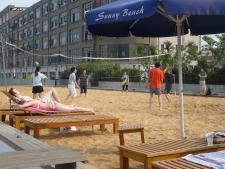 Ville côtière, Shanghai ne brille pourtant pas (encore) par l'aménagement de son littoral. Forts de ce constat, des investisseurs avisés ont eu l'idée de créer une plage - artificielle - sur la rive Ouest du HuangPu, juste en face des Cool Docks. Bon, on est loin de l'authentique grève de sable fin et il n'est pas question de se baigner dans le fleuve... Mais la « Sunny Beach » remplit parfaitement son office. A disposition : du sable à gogo, des transats, parasols, et même deux petites piscines, bien pratiques pour barboter quand le mercure flirte avec les 40°C. Le public ? Des familles et des étudiants, en mode bronzette ou sportif, le lieu proposant moult activités, dont du beach volley (location 300RMB/2h, résa conseillée). Le dress code : maillot/paréo ! Et n'oubliez pas l'écran total.