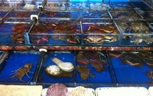 Le marché aux fruits de mer et aux poissons On oublie souvent que Shanghai est le plus grand port du monde. Le long de la Tongchuan Lu, et en s'enfonçant dans les interminables allées du marché couvert, on retrouve une ambiance de criée avec les marchands armés de tabliers et de bottes en plastiques, actionnant épuisettes et déversant toutes espèces aquatiques vivants dans les aquariiums. Tongchuan, c'est le Rungis du poisson et surtout du fruit de mer ! Vous y trouverez du poisson plat (à cuisinier à la shanghaienne avec du gingembre, du vin Xiaoxing et de la coriandre), du maquereau, des méduses (à agrémenter avec du vinaigre et du soja après 3 jours de dessalage), des couteaux... Bien sûr, c'est aussi l'empire du crabe (poilu mais pour celui-ci, il faudra attendre le mois de septembre ou plat que les Chinois mangent cru et mariné), des écrevisses (à déconseiller car provenant des rivières) et bien sûr des crevettes, un basique de la cuisine shanghaienne ! Ce jour-là, on y a même trouvé du mérou rouge et fauve ! Si vous ne savez pas comment les préparer, choisissez l'espère qui vous fait envie et les nombreux restaurants de l'autre côté de la rue se feront un plaisir de vous la préparer.