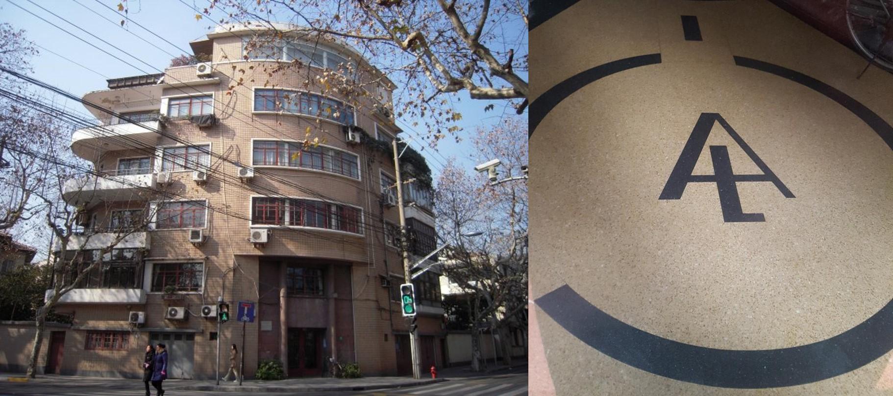 20. Continuez ensuite à remonter Gao’an Lu. Finissons maintenant en apothéose : au croisement avec Kangping Lu, au 14 Gao’an Lu, voici l’Amyron. Petit immeuble de six étages achevé en 1941 par Alexandre Léonard, chacun des cinq étages avait un agencement intérieur différent. A son sommet, encore une fois, un duplex. Celui-ci était couronné par une chambre circulaire et disposait de trois larges terrasses – afin d’y organiser des réceptions et des fêtes jusqu’au bout de la nuit… Mais surtout, ne manquez pas une petite merveille qui peut être aperçue depuis l’extérieur : dans le lobby, sur la mosaïque au sol, voici les lettres « A » et « L » inscrites dans un cercle. Voici comment Alexandre Léonard, non seulement architecte mais aussi propriétaire de l’Amyron, avait signé son œuvre…