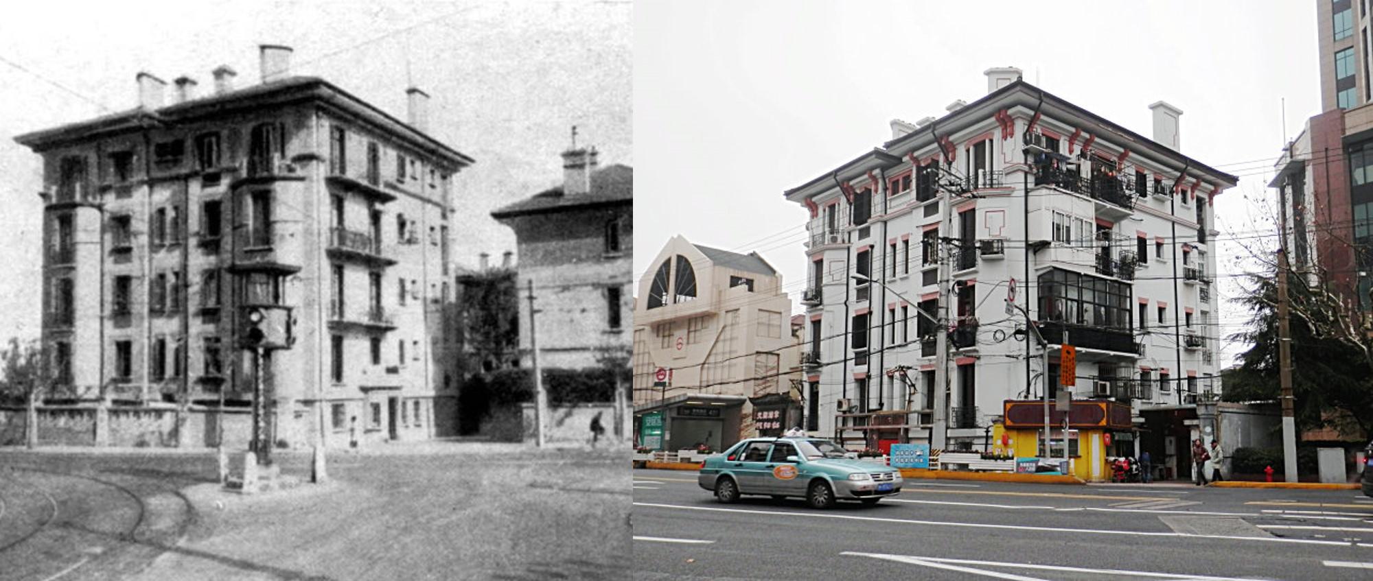 3. Continuons notre route vers l’Ouest, jusqu’au croisement avec Changshu Lu. Vous allez apercevoir au 1323 Huaihai Lu (côté Sud), juste avant la tour moderne qui fait le coin de la rue, une construction de quatre étages qui semble avoir été téléportée depuis l’Avenue du Prado à Marseille jusqu’à Shanghai. Au temps de la Concession, elle servait à héberger les officiers d’un poste de police qui se trouvait juste à côté – et qui a été depuis rasé pour être remplacé par la tour actuelle. Toutefois, sa vocation n’a pas changé : ce sont toujours des policiers et leurs familles qui l’habitent. Probablement commissionné par la police française, on imagine que son architecte venait de la cité phocéenne. Il existe d’ailleurs deux bâtiments très similaires sur le Jianguo Dong Lu, à côté… d’un autre poste de police.