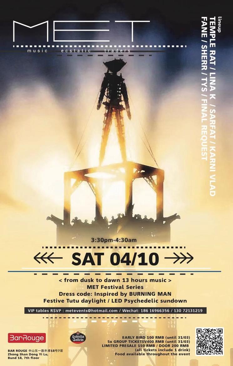 Le 10 avril, à partir de 15h30. Bar Rouge, Zhong Shan Dong Yi Lu, Bund 18. 150/200 RMB.