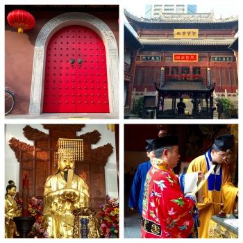 Bien sûr vous connaissez ou avez entendu parler du temple du Nuage Blanc de Pékin ! Et bien, il a un "petit frère" à Shanghai. C'est d'ailleurs le second temple taoïste en importance de la ville, et le seul à posséder encore (avec celui de Pékin) des manuscrits taoïstes datant de la dynastie des Ming. Déplacé en 2004, en son lieu actuel, au c?ur de la vieille ville, il affiche derrière une grande porte rouge vif, un style assez classique, avec son bois assez travaillé et ses dorures. Lors de ma visite, j'ai pu vivre une belle expérience : une cérémonie d'hommage à deux morts? De nombreux moines et un prêtre, officiaient avec psalmodies et gestuelles traditionnelles. De la musique, flûtes, gongs, tambours, accompagnaient les chants des moines et servants. Leurs habits sont d'ailleurs très différents des toges orangées bouddhistes. La salle principale en haut de la cour centrale abrite une grande statue de l'Empereur de Jade assez impressionnante. De nombreux fidèles assistaient à cette cérémonie, et ce sont des moines qui m'ont expliqué la cérémonie. Le tour extérieur à l'étage est là aussi incontournable, pour la vue, pour la cloche, pour les balais qui sèchent au soleil? Je n'imaginais pas le taoïsme aussi accessible !