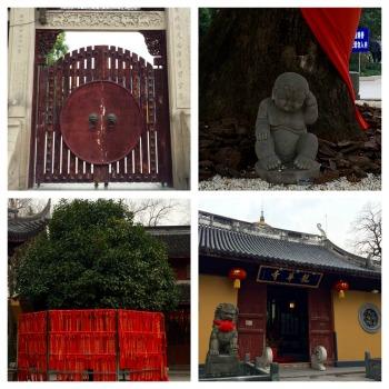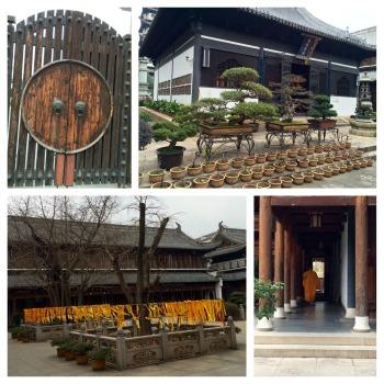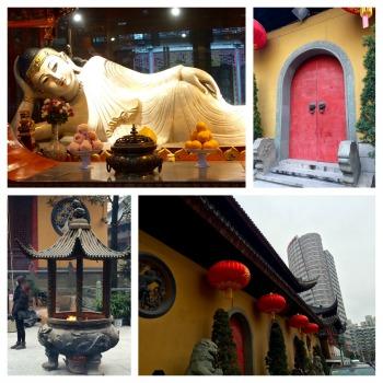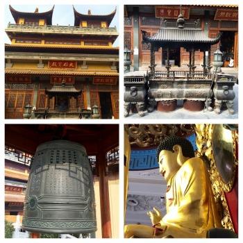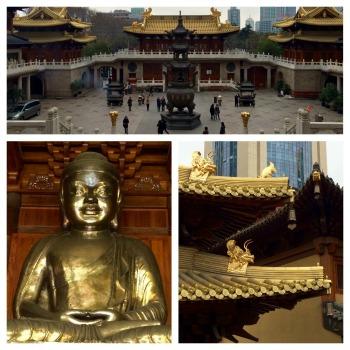 Erigé au début du XXème siècle, ce temple bouddhiste se situe juste au nord de Jing'An, dans un quartier plus populaire et plein de charme. Il est connu pour héberger plusieurs statues de Bouddhas assez impressionnantes : le plus connu, un grand Bouddha de jade blanc de près de 2 mètres (importé de Birmanie), un autre Bouddha de marbre allongé de 4 mètres de long, et un Bouddha assis incrusté de pierres précieuses. Le style général de ce temple est assez classique, ancien, voire parfois désuet. Son architecture est plus compacte, des escaliers, des étages, des couloirs, des pièces de petite taille parfois, on dirait presque une maison de famille... L'ambiance y est d'ailleurs assez familiale, vivante, les fidèles discutent entre eux ou avec les moines et servants. Les salles d'exposition et boutiques de souvenirs sont assez grandes, on est bien en Chine... Mais la ferveur est toujours intense devant les statues. L'histoire raconte que pour préserver le lieu pendant les années 60 à 80, on avait tapissé les murs du temple d'affiches à l'effigie de Mao?
