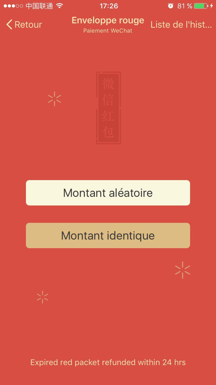 L'envoi des HongBao nécessite d'avoir l'option Wallet sur son WeChat, qui n'est pour le moment disponible que pour ceux enregistrés en Chine.