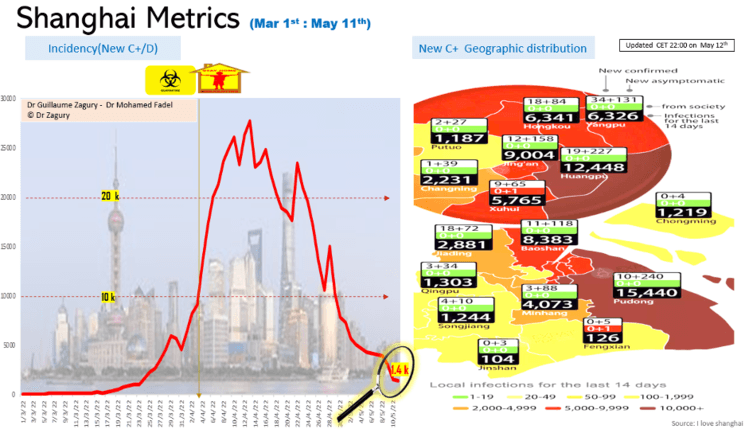 . Surtout, le fait que seulement moins de 5% des Shanghaiens (90% des cas C+ en Chine) ont été au contact d`Omicron (versus 40% à Hong Kong). Par suite, impossibilité d`agir de façon brutale.