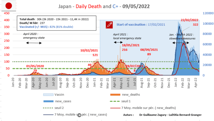 - Dans le pays présentant la plus grande densité de centenaires au Monde, le Covid n`a pas eu l`impact observe en Occident, suite à différents éléments : insularité, culture de la distanciation sociale et du masque, ....