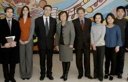 L'équipe de gestion du petit Lotus bleu et l'équipe pédagogique Aiju en compagnie de Thierry Mathou, lors d'une visite officielle en février 2010 (Crédit photo: Aiju)