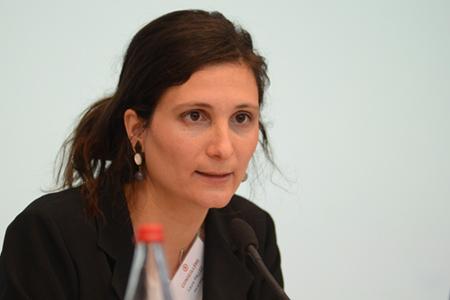 Laure Pallez, lors de la présentation des travaux de la commission des finances, du budget et de la fiscalité, le 18 mars 2016 à l'AFE. Photo : MAEDI/Olivier BOLVIN