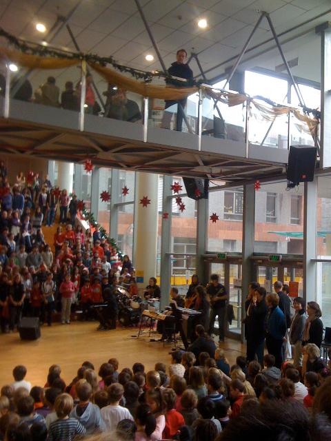 Les enfants, les enseignants, les parents : il y avait beaucoup de monde ce matin-là dans la piazza. Plus de 900 élèves au total ont participé à ce concert de Noël, organisé par l'école. D'abord les chants de Noël : du brouhaha ambiant, les voix des plus jeunes s'élèvent, sous la direction de Cécile Gizycki. Avec des chants traditionnels en français, en anglais et en chinois, l'école française est fidèle à sa vocation d'apprentissage des langues.