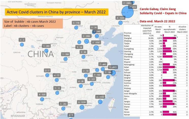 Carte des foyers actifs et incidence par province pour le seul mois de mars 2022 – Une diffusion inédite depuis Wuhan.