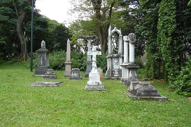 Le flanc est de la colline a aussi servi de cimetière catholique et protestant entre 1822 et 1865. Plus de 600 personnes y ont été enterrées. La plupart des tombes ont été enlevées, mais il en reste quelques-unes le long des murs qui bordent l’espace vert en contrebas du Fort Canning Centre.