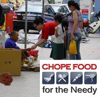 L'initiative populaire "Chope for the Needy", lancée début avril par Michelle Tan, une citoyenne singapourienne, propose une action simple et concrète. Chaque Singapourien est invité à laisser au restaurateur de son choix, dans le Food Court qu'il fréquente régulièrement, un peu d'argent en plus de son addition pour financer le repas d'une, cinq ou dix personnes démunies. Ensuite, chaque restaurateur doit identifier la ou les personnes qui ont le plus besoin de cette aide.