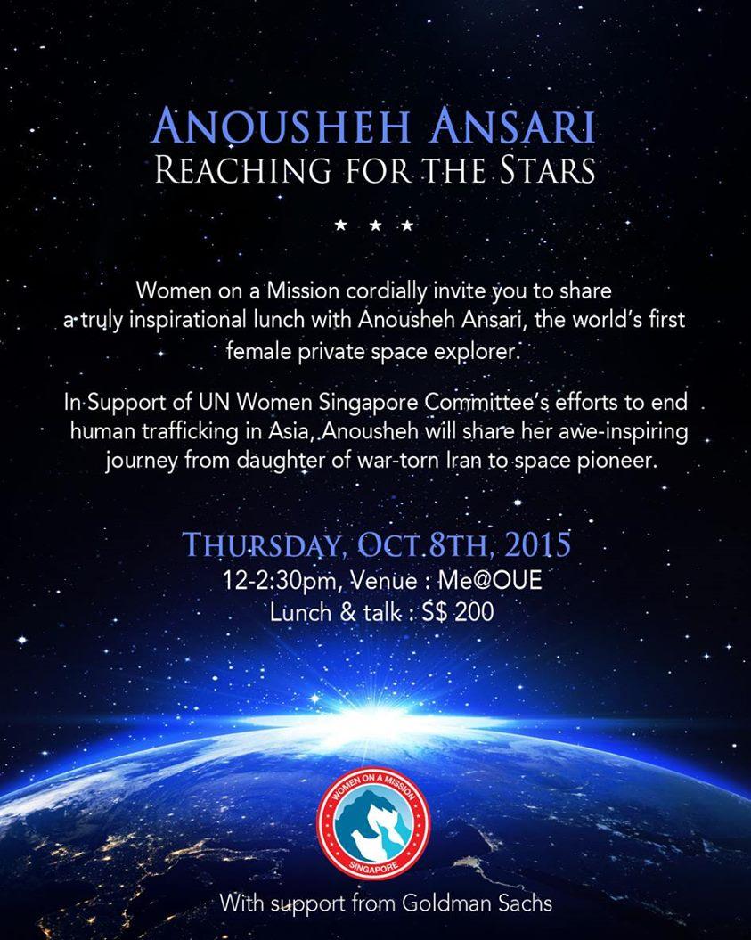 Les femmes de « Women on a mission » sont décidément de drôles de dames, dont la capacité à laisser très loin derrière elles leur zone de confort, semble être à la démesure de leur engagement pour les causes qu'elles soutiennent. Chaque année elles montent des expéditions en terres lointaines et organisent des évènements de levée de fonds au bénéfice d'associations luttant contre les violences faites aux femmes. Cette année, elles partiront, le 24 novembre, en Sibérie et organisent le 8 octobre à Singapour, un événement « reaching for the stars », autour d'Anousheh Ansari, qui fut la première femme à réaliser un voyage privé dans l'espace.