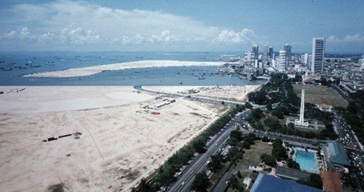 Ces trois tours surmontées d’une plateforme, qui constituent aujourd’hui l’image iconique de Singapour, ont en fait moins de 15 ans. D’ailleurs, il y a 50 ans, l’endroit où elles se tiennent était encore la pleine mer. En effet, tout le terrain autour de Marina Bay, excepté le côté où est situé l’hôtel Fullerton, a été gagné sur la mer. Ce travail pharaonique a duré près de 20 ans.