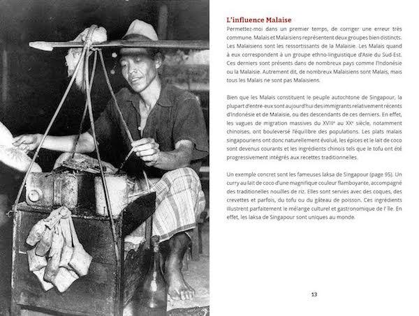 Le livre se divise en cinq parties. Premièrement, je parle des cultures de Singapour et de l’histoire du « street-food » et de son développement au fil du temps. Quelles sont les influences de la gastronomie singapourienne ? Pourquoi ne voit-on aucun vendeur de rue ? Quelles sont les bonnes manières dans les cultures indienne, malaise, chinoise ? Quel est le rôle des « food courts », ces grands centres de « street food », dans la vie sociale de cette cité multiculturelle ? Toutes les réponses sont dans cette première partie, accompagnées par des illustrations des archives nationales, afin de comprendre les changements saisissants qu’a traversés la ville en moins de quelques dizaines d’années.