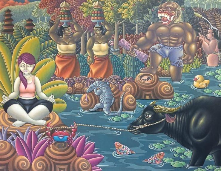 Il existe des centaines de teintes vertes disponibles sous forme de peinture et de pigments pour les artistes et la sélection d'œuvres d'art de l’exposition montre comment les différentes palettes vertes créent un effet rafraîchissant et apaisant. Au-delà de la qualité esthétique des œuvres, l'exposition est une invitation à réfléchir sur notre responsabilité dans la protection de notre environnement. Alors que Singapour est un exemple dans la région en tant que ville verte, le Myanmar dilapide ses ressources naturelles. Avec l'exemple de Bali, cette exposition interroge également sur les risques du tourisme de masse et les enjeux pour l'hôtellerie.