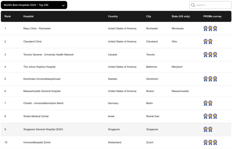 Une progression qui confirme sa régularité et souligne son statut d’exception asiatique : le SGH est cette année le seul hôpital du continent asiatique à figurer dans le top 10 mondial, majoritairement dominé par les institutions américaines, allemandes, suisses et israéliennes.