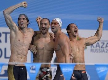 Camille Lacourt, Jeremy Stravius, Fabien Gilot et Giacomo Perez-Dortona (photo AFP)