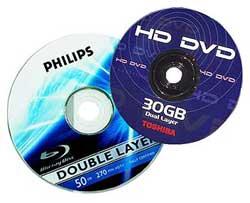 Toshiba, de son côté, riposte avec le HD-DVD (15 à30 Go de capacité) soutenu par Universal Pictures, Warner Bros, Sanyo et Microsoft. La prochaine console XBox-360 équipée d'un lecteur classique de DVD, ne lira pas toutefois les HD-DVD.