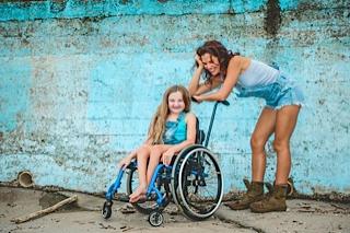 Aujourd'hui, elle se déplace en fauteuil car ses jambes ne sont pas assez solides pour la porter. Sa maman la porte aussi beaucoup sur son dos, elle est très légère et très petite, mais à sa façon elle mène une vie presque normale.