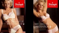Plus récemment l'affiche d'une jeune femme en lingerie Triumph disait : "Enfin une candidature bien soutenue" ou "Avec moi, il n'y aura pas d'abstention". L'association des Chiennes de gardes n'a pas tellement apprécié le rapport entre les sous-vêtements et la démocratie. Mais, le plus souvent, ces pubs attirent l'?il et, en ces temps électoraux, l'oeil de l'électeur-consommateur.