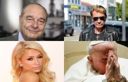 De gauche à droite, de haut en bas : Jacques Chirac, Johnny Hallyday, Paris Hilton et Jean Paul II (photos AFP)