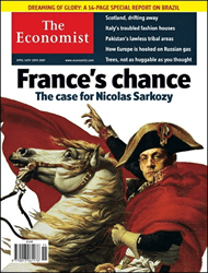 Nicolas Sarkozy arrive en tête de notre sondage avec presque 30% des voix (couverture de The Economist, le magazine britannique, du 14 avril)