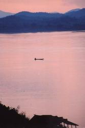 Les pirogues silencieuses ressortent ànouveau au coucher du soleil pour pêcher sur le long fleuve tranquille (Photo LPJ Bangkok)