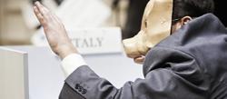 Les chefs financiers, représentants l'impérialisme de l'argent, sont tournés en dérision dans l'opéra Youssou Aida ! (photo greekfestival.gr)