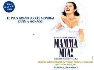 La comédie musicale MAMMA MIA ! arrive enfin en Principauté de Monaco. Ce succès planétaire, à l'affiche depuis 1999 à Londres et Broadway, en tournée mondiale, va submerger la Salle des Princes du Grimaldi Forum pour 7 représentations seulement, du 24 au 28 juin (5 soirées et 2 matinées).