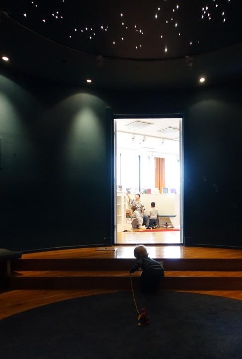 À gauche se dresse le salon de lecture, rond, sombre, au ciel étoilé et concave qui amplifie le moindre éternuement. Des lectures publiques y sont organisées lors du Något händer, tous les jours à 14h30 et à 16h. Parfois ce sont des chansons, accompagnées à la guitare. La session du mercredi 16h est dédié à des lectures en anglais. Ce dimanche-là, l'animatrice agitait la cloche pour regrouper le troupeau autour d'une séance cinéma. Chose étonnante, seule une dizaine d'enfants a préféré le grand écran aux livres.