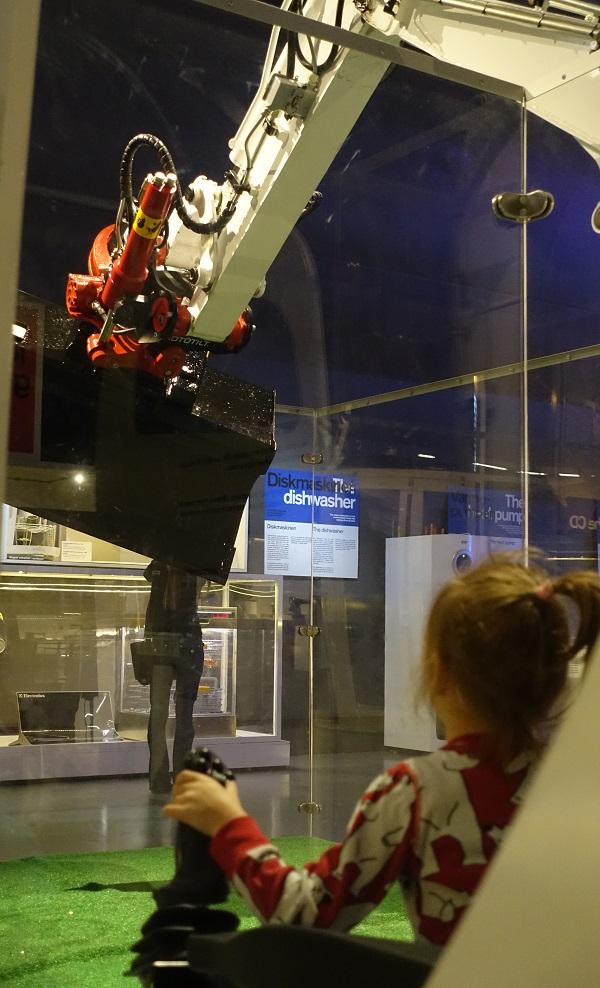 En réalité, les deux grandes salles plongées dans la pénombre que l'on arpente regroupent les 100 innovations qui ont changé le monde. D'ailleurs, vous pouvez voter pour votre invention favorite sur le site de l'exposition et suivre l'évolution des votes. À ce jour, les adultes placent la roue et l'électricité en premier, tandis que les enfants choisissent l'ordinateur et la voiture. En fin de compte, c'est logique, les parents fournissent toujours les matériaux et l'énergie, tandis que les enfants profitent, tout simplement ! Il existe néanmoins quelques installations à manipuler dans cette exposition. Cachée derrière l'immense machine à vapeur, une table d'autopsie interactive attend les futurs chirurgiens. Dans la seconde salle, les chefs de chantier en herbe tenteront d'attraper une balle de tennis à l'aide d'une vrai pelleteuse (prévoir un bouquin, ça peut durer longtemps). Non loin, un énorme cube aux parois multicolores attire notre attention : le « Innovationslabbet » est ouvert le week-end de 11h à 16h, mais à 15h45, la porte est déjà close? dommage ! Il faudra revenir pour profiter des jeux de construction (Légo, K'Nex, Plus Plus) qui sont censés déclencher le processus de création et donner envie d'innover. C'est qu'ils sont ambitieux au Tekniska ! Pour le reste, il vous faudra être très convaincant pour éveiller l'intérêt de vos enfants face à une manette de NES, un CD de Myst, une disquette de Tetris, ou même devant un Imac de 1998. La technologie ça vieillit vite, très vite.