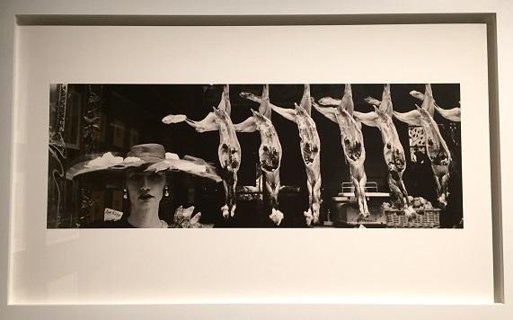 C'est finalement son ?uvre de jeunesse que je préfère : des photos en noir et blanc, des silhouettes élégantes se promenant dans Paris. Une tête chapeautée à côté d'une devanture de boucherie où pendent des carcasses de porcs ou des têtes de veaux : le contraste vie/mort, mode/morbide. « La beauté attire les mouches comme une charogne », citation du photographe, pourrait être le titre de ses photos, peut-être même résumer son ?uvre finalement. Car on retrouve la morbidité dans ses ?uvres plus tardives, bien que moins directement exprimée, parfois dissimulée dans un humour bien noir. Guy Bourdin fut le protégé du grand Man Ray et garda une inspiration surréaliste tout au long de sa carrière. Tout comme André Kertesz, il découvrit la photo lors de son service militaire, mais s'orienta ensuite dans un style complètement différent. Il peignait aussi ; d'ailleurs quelques-unes de ses peintures sont exposées au Fotografiska.