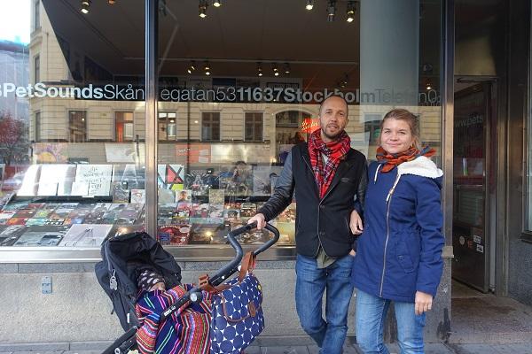 Jonas, Erica et le petit Henri devant Pet Sounds, le disquaire